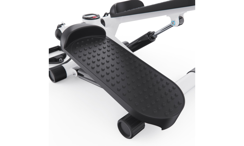 Педали степпера имеют размеры 31,5 х 11,5 см, а благодаря ручке на раме тренажёра вы можете регулировать высоту их подъёма, выбирая оптимальный уровень нагрузки. Чем выше поднимаются педали, тем больше усилий вам нужно прилагать, и наоборот.